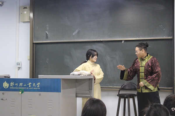 自编自导自演话剧《一片甲骨惊天下》把活动现场氛围推向了高潮,由真实历史事件改编,同学们自己呈现的历史话剧,全面再现了“甲骨文之父”——清代学者王懿荣发现、研究和保护甲骨的历史。话剧带领与会人员穿越历史,甲骨文的发展仿若星辰,照亮了同学们与殷商展开对话的一幕幕瞬间。