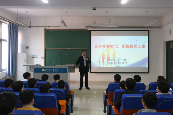 11月22日,材料与化学工程学院于化工楼218室举办“奋斗青春时代,把握精彩人生”主题就业创业大讲堂,我院电化学专业2006届优秀校友、双鹿电池总经办主任王佼佼先生、17级、18级学生参与本次活动。