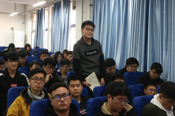 会上,王佼佼学长主要针对“创新”、“创业”两个词,做了演讲。他表示,在当今大学毕业生人数不断增加,就业形势愈加严峻的情况下,培养我们在校大学生的创新创业意识、提高我们的创业就业能力具有十分重要的意义与作用。同学们对这段话感慨颇深,现场反响热烈。在交流互动环节,同学们纷纷提出自己在创新创业这方面遇到的问题及困惑,王佼佼学长结合自身的经验,用风趣幽默的语言耐心解答同学们的问题,现场气氛十分热烈融洽。最后,王佼佼学长呼吁同学们在如今创新创业环境好,政策多的条件下,能积极参加创新创业类活动,培养自己的挑战精神和市场洞察力,然后在这个崭新的时代中开辟出一番属于自己的天地。