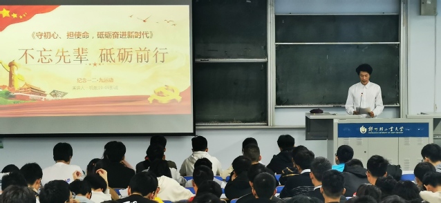 为纪念“一二·九”运动84周年,加强青年学生爱国主义教育,引导青年学生继承革命传统、弘扬民族精神、牢记使命担当,12月1日下午,机电工程学院在东一楼200举办纪念一二·九运动84周年系列活动之“守初心,担使命,砥砺奋进新时代”主题演讲比赛,2018级、2019级全体学生参加了本次活动。