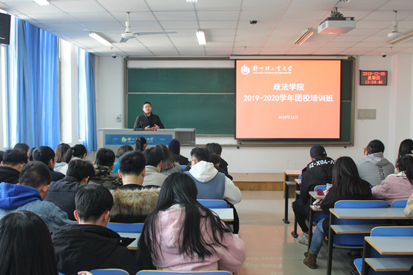 为进一步加强理想信念教育,提升学生干部素质,根据2019--2020学年团校培训班安排,政法学院于12月5日中午1:00在二教楼802开展“强化思想引领,牢筑理想信念”主题团课培训,政法学院党总支副书记许海龙老师主讲,2017级、2018级、2019级团员干部参加了此次培训。