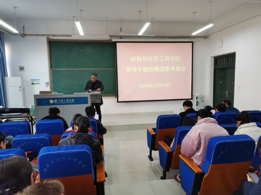 12月19日下午,材料与化学工程学院在化工楼218室召开了院领导班子和领导干部任期考核述职暨民主测评大会。校纪委副处级纪检员崔建平和学院教职工参加了大会,会议由党总支书记康国磊主持。