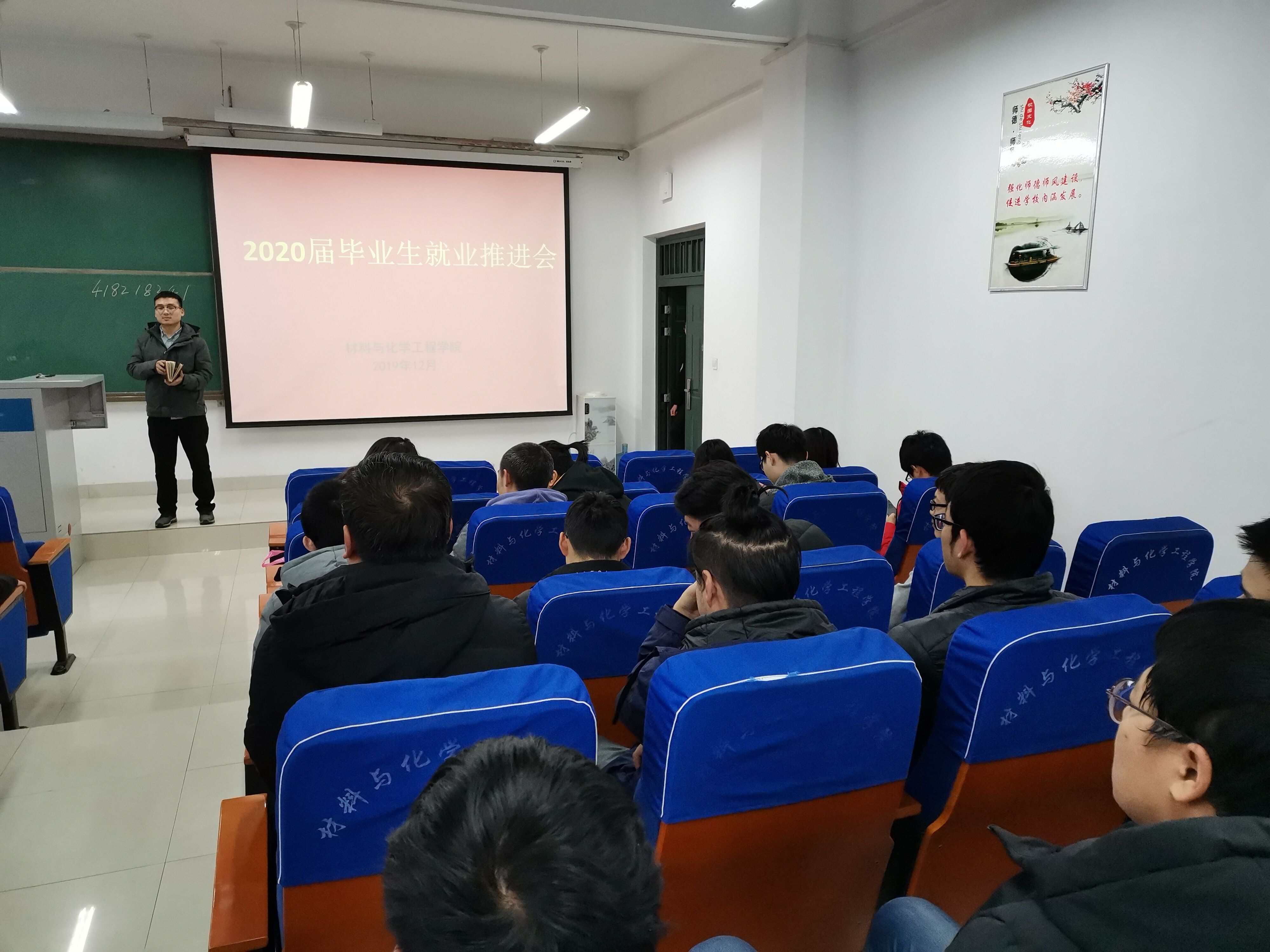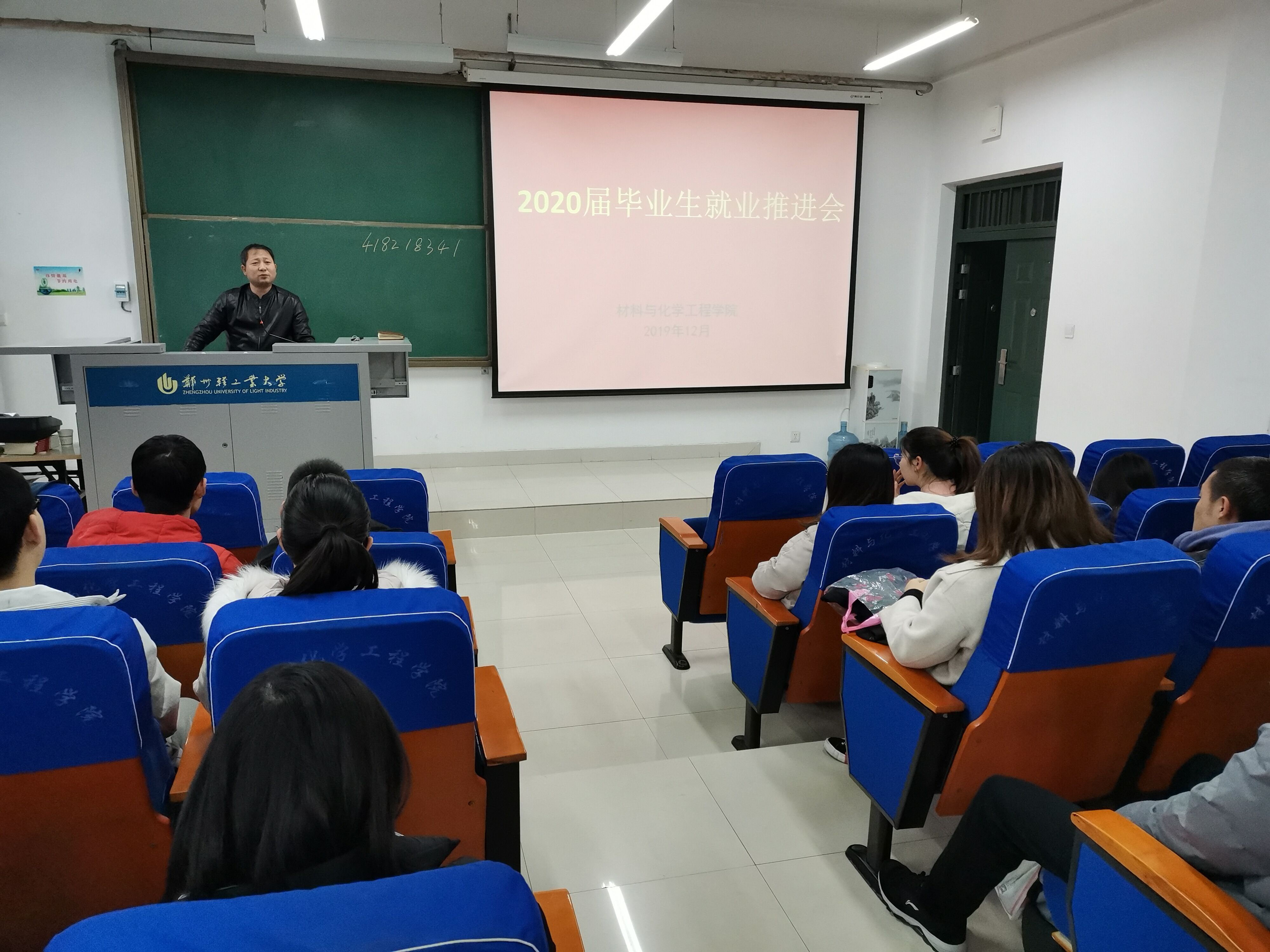 为进一步提高2020届毕业生就业质量与层次,确保学院后期就业工作顺利开展,12月23日,材料与化学工程学院分班组织2020届毕业生召开了就业工作推进会。学院党总支副书记宋德涛老师,辅导员郭智荣老师,负责学院就业工作的杨亚皇老师参加了此次会议。