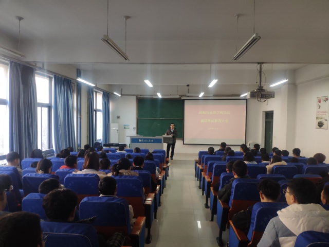 为保障即将到来的期末考试各项工作顺利开展,严肃考风考纪,树立良好学风,材料与化学工程学院于近日召开诚信教育大会,学院全体专兼职辅导员及各年级认真组织开展了诚信教育大会。