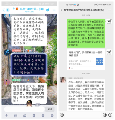 疫情当前,青年学生在疫情防控中作为重要力量,肩负着光荣的使命、责任和担当。经济与管理学院为做好疫情防控期间团员青年的思想引领工作,广泛动员各级团支部和青年学生行动起来,迅速开展各类线上特殊团课,各个年级组织了形式多样的线上主题团课活动。
