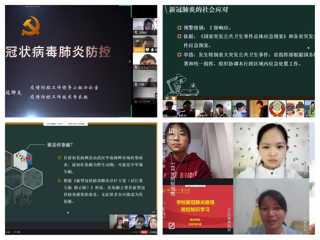 在这个被暂停了的春天里,共同战“疫”、攻坚克难的脚步却始终未曾停歇。政法学院将继续落实好上级有关疫情防控工作要求,积极组织好疫情期间学生的思想政治教育和学习教育活动,凝心聚力,共同打赢疫情防控阻击战!