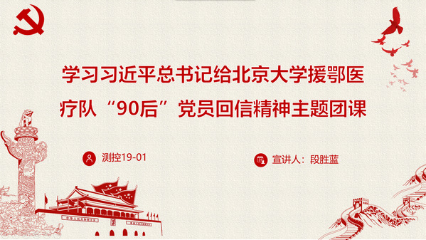 为引导我院团员青年不惧风雨、勇挑重担,在艰苦奋斗中砥砺意志品质,3月27日至3月29日,机电工程学院各团支部以直播互动的形式,开展学习“习近平总书记给北京大学援鄂医疗队‘90后’党员回信精神”线上主题团课。