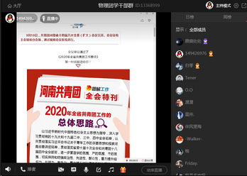 各团支部通过线上直播、网络研讨等形式,带领团员青年重点学习了《2020年全省共青团工作要点》和王艺书记《把准工作主线提升“三力一度”为谱写新时代中原更加出彩绚丽篇章贡献青春力量》的讲话精神。共青团河南省委十四届八次全会(扩大)会议于2020年3月13日召开,会议全面总结了河南省共青团2019年工作,并对2020年工作进行了安排部署,会上王艺书记对如何做好2020年河南省共青团工作做了专题讲话。在深入学习全会精神后,学院团员青年分享了学习感受,纷纷表示会在今后统一思想认识,提高政治站位,把会议精神落实到今后学习工作中去,肩负起新时代团员青年的责任和使命。