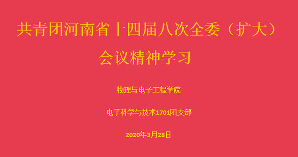 为了深入学习贯彻共青团河南省十四届八次全委(扩大)会议精神,3月27日至31日期间,物理与电子工程学院各基层团支部组织开展了线上学习活动。