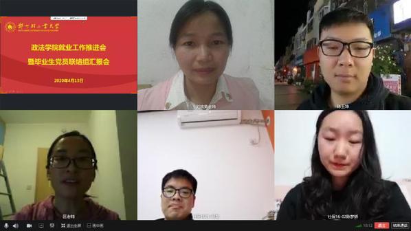 4月13日晚,政法学院召开了毕业生就业工作推进会暨毕业生党员联络组汇报会,学院党委副书记刘放美、毕业班辅导员及全体毕业生党员参加会议,会议由就业专干匡竞老师主持。