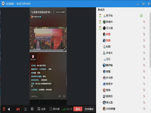 各班级团支部依托网络平台集中开展“五四精神·传承有我”主题团日活动、五四观影活动等线上活动,掀起了继承和发扬五四精神的热潮。通过活动的开展,进一步激励和引领广大团员青年时刻牢记习近平总书记嘱托,坚定理想信念,练就过硬本领,为决胜全面建成小康社会、实现中华民族伟大复兴中国梦贡献青春力量。