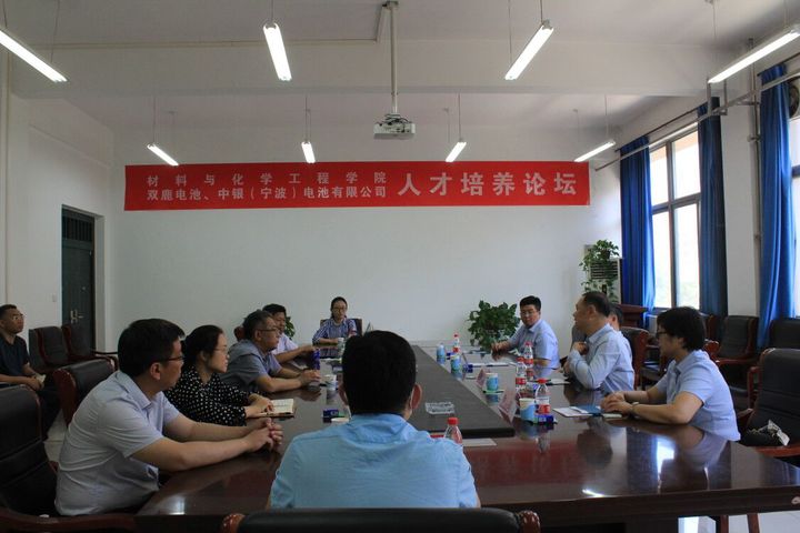 客座教授聘任仪式后,王剑浩一行同材料与化学工程学院教师代表举行人才培养论坛。双方就人才培养、课程建设、师资建设等方面开展交流和探讨。王剑浩对当前国内碱锰电池行业的发展形势与前景进行了分析,希望双方在关键技术研发、专业人才培养、产学研合作等方面加强协作。材料与化学工程学院院长周立明对企业提出的宝贵意见和建议表示感谢。他表示,学院将立足企业和行业发展实际,进一步做好人才培养方案顶层设计,切实提高人才培养质量,提升科研能力水平,推动校企合作向纵深发展,实现资源共享、优势互补、合作共赢,为地方经济社会发展做出应有贡献。