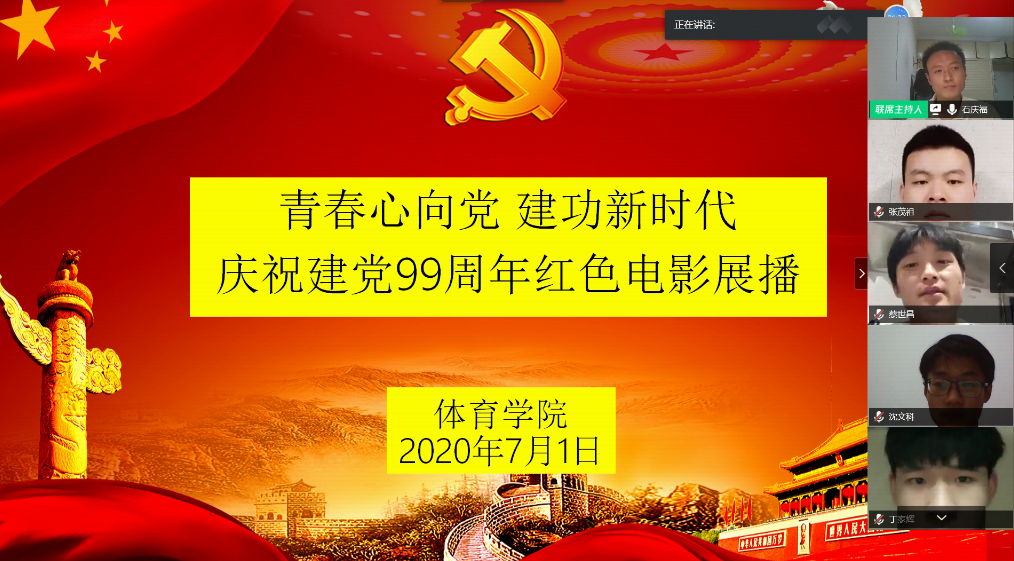 为庆祝中国共产党成立99周年,回顾党的光辉历程,缅怀革命先辈的丰功伟绩,7月1日,体育学院在线上开展了“青春心向党 建功新时代”庆祝中国共产党成立99周年红色电影展播活动,体育学院全体学生参加了此次活动。
