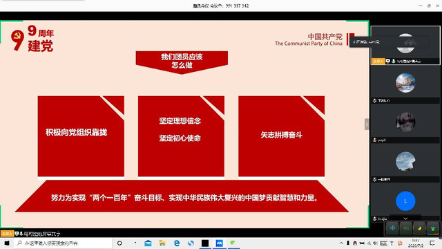 中国共产党已走过99年光辉而不平凡的历程,在此次活动中,各团支部依托各线上平台,通过集中学习、网络研讨等丰富多彩的学习方式,回顾党的光辉历程,学习复旦大学《共产党宣言》展示馆党员志愿服务队的先进事迹,认真解读习近平总书记重要回信的深刻内涵和重大意义。总书记的回信在广大团员青年中引起热烈反响,安全工程2019级1班马可滢说:“作为一名团员青年,我们应努力学好科学文化知识,把准人生航向,把个人理想与国家发展、社会需要紧密结合起来,为中华民族伟大复兴的中国梦想的实现贡献智慧与力量。”建筑电气与智能化2018级1班张文琪谈到:“我们应时刻牢记自己的使命和责任,不忘初心跟党走,志存高远、脚踏实地,勇做时代的弄潮儿,在实现中国梦的生动实践中放飞青春梦想。”