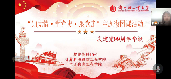为庆祝中国共产党成立99周年,深入学习贯彻全国两会精神。计算机与通信工程学院(电子信息工程学院)于6月30日至7月4日开展“知党情·学党史·跟党走”庆祝中国共产党成立99周年主题微团课活动。