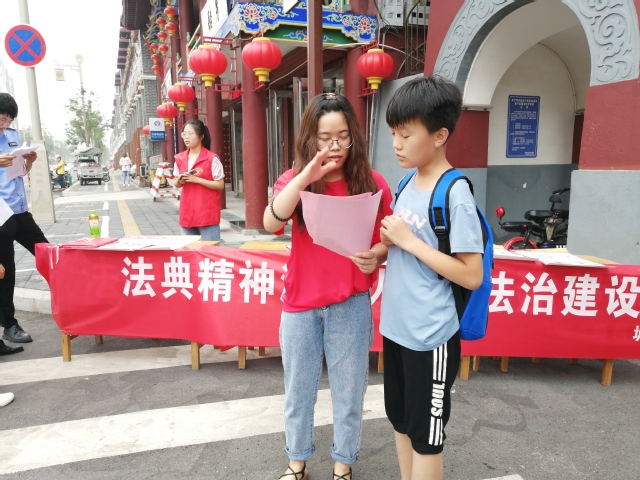 “国家刚颁布了民法典,这是维护咱们老百姓权利的宝典,咱们大伙儿都来看一看……”志愿者们现场宣讲,营造学习民法典的良好氛围;以案释法,将民法典融入日常生活;提供法律咨询,引导群众知法守法、依法办事;通过实践调研、街道走访等多种方式,向群众全方位、多角度讲解这本法律界的“百科全书”,提升群众对民法典的认知。