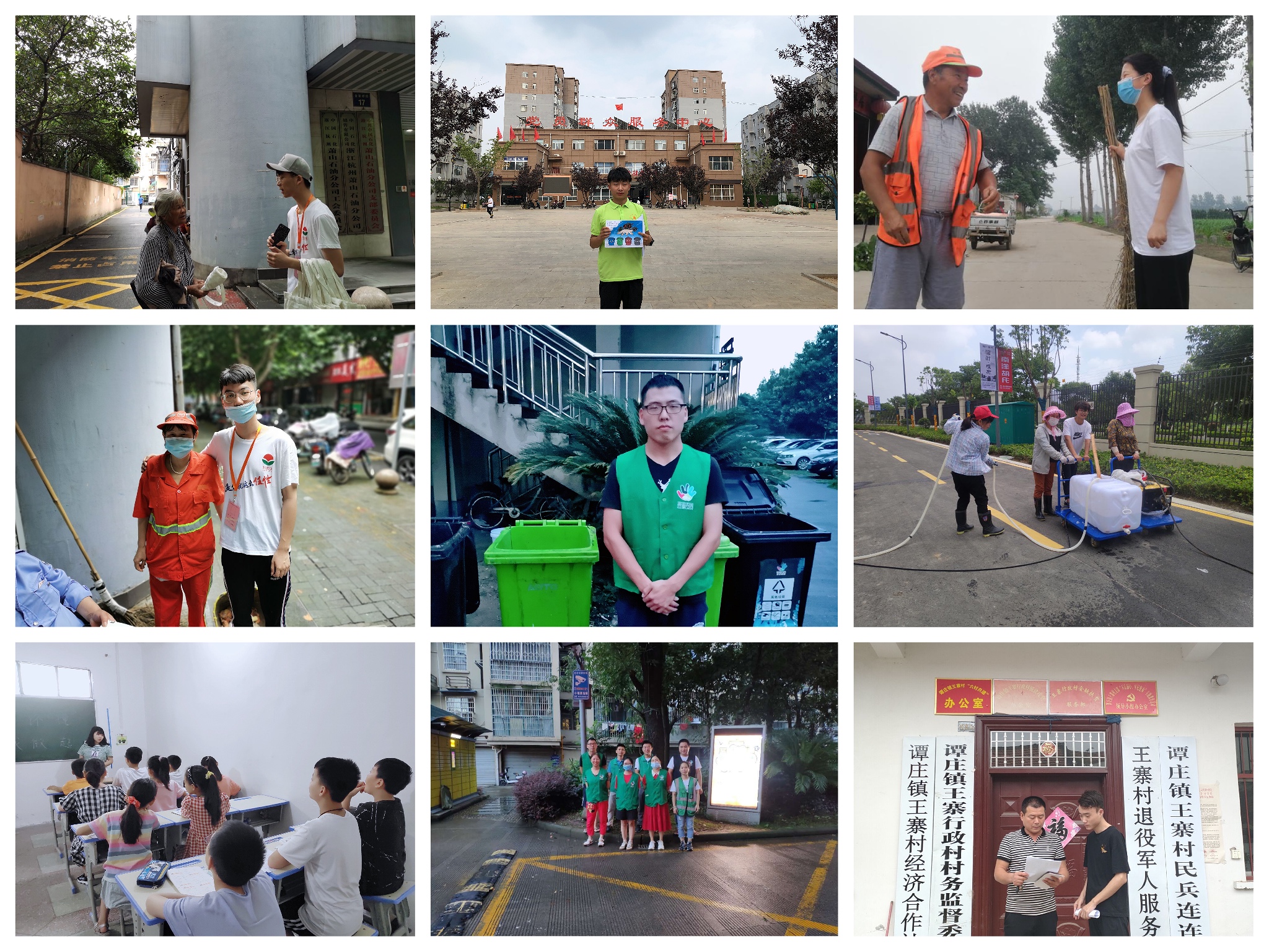 环保宣传进社区,志愿服务我先行。实践队员们以践行习近平总书记“垃圾分类就是新时尚”的号召,在杭州市萧山区新塘街道联华新村村委会、新疆维吾尔自治区塔城地区乌苏市锦泰嘉阳社区等地与开展宣传环保和志愿服务活动。队员们上网搜集资料、设计宣传海报、制作宣传标语,进村入户进行环保知识宣传、垃圾分类宣讲、环境整治宣讲等活动,通过采取悬挂横幅标语、发放传单和环保袋,张贴宣传海报等形式,对学校周边和过往行人宣传环境保护的重要性。
