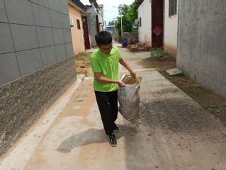 实践队员协助第一团支书程前帅老师整理材料 实践队员帮助贫困户清理垃圾