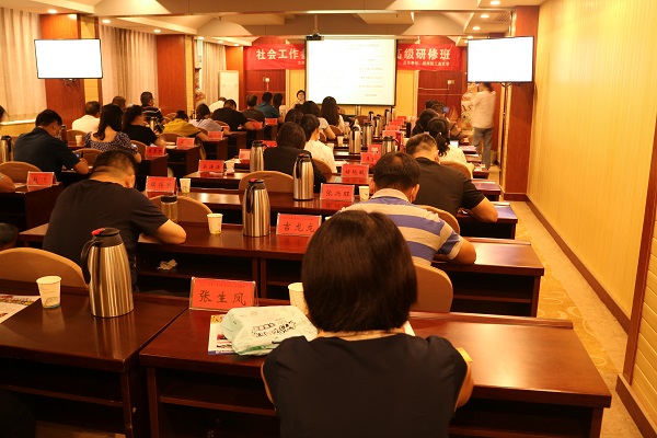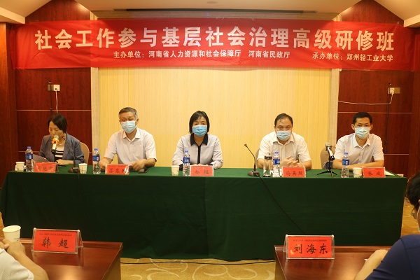 我国大力推进国家治理体系和治理能力现代化建设背景下,为增强将社会工作的专业优势与当前社会治理相结合的意识和能力,推动社会工作积极参与城乡社区治理和农村发展进程。8月5日至7日,由河南省人力资源和社会保障厅、河南省民政厅主办,我校政法学院承办的“河南省社会工作参与基层社会治理高级研修班”在郑州市金河宾馆会议室隆重举办,来自全省各地市的55名民政干部和社会工作专业人才参加了现场培训,800余名民政干部和社会工作者在线收看了会议直播。
