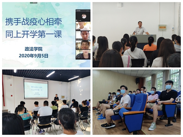 为更好的完成返校学生教育教学和疫情防控工作,结合学生日常思想政治教育实际,政法学院于9月5日-6日以线上线下相结合的方式开展了“开学第一课”专题活动,全体辅导员及全体返校学生参加了本次活动。