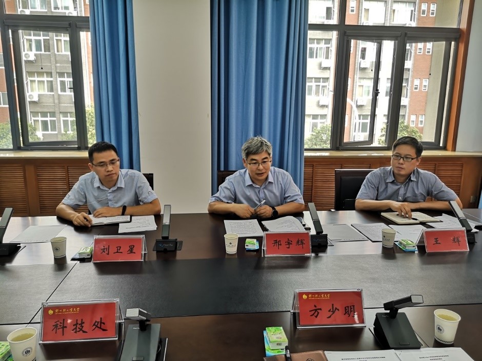 2020年9月14日上午11点,河南省科技厅政法处处长邢宇辉一行3人来我校做关于赋予科研机构和人员更大自主权有关政策情况的调研。座谈会在科学校区办公楼206召开,副校长方少明,相关部门负责同志及重大科研项目代表参加了会议。