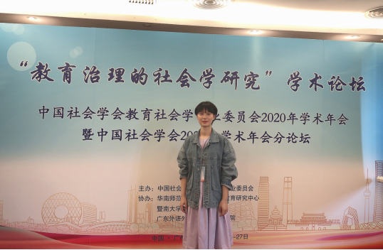 9月25日-27日,由中国社会学会教育社会学专业委员会主办,华南师范大学港澳青少年教育研究中心、东南亚文化教育研究中心等承办的中国社会学教育社会学专业委员会2020年学术年会暨中国社会学会2020年学术年会“教育治理的社会学研究”分论坛在广州举办。政法学院公共事业管理专业2018级1班陈莹慧受邀参加会议,并做了小组发言。