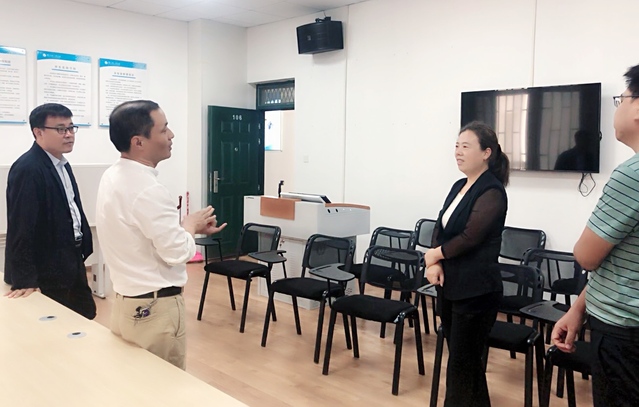 洛阳理工学院张瑞玲一行先后参观了政法学院社会工作TPR融合实训中心的个案工作实验室、小组工作实验室、社区工作实验室、视频观摩区。在参访过程中,学院副院长栗志强介绍了学院专业建设及实践教学特色,社会工作系主任徐京波介绍了社会工作专业实践教学体系及实验室建设情况,实验实践教学中心主任郝宏杰对学院实验室管理和实验教学运行情况作了介绍。