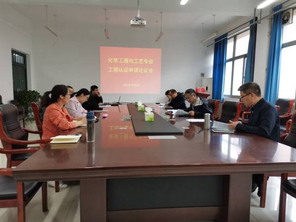 化学工程与工艺专业负责人汇报了申请书进展情况、存在的问题以及下一步工作计划。与会领导和专家听取了汇报,审阅了化学工程与工艺专业的工程教育认证申请书和附件材料,提出了意见和建议,并就专业特色、课程体系、师资队伍和申请材料中存在的问题进行了讨论。