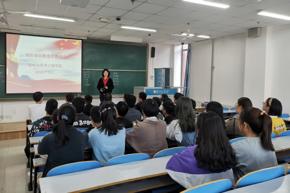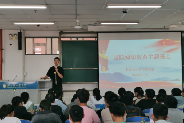 为了弘扬爱国主义精神,普及国防教育,使广大学生增强国防观念,自觉履行国防义务,关心、支持、参与国防建设,材料与化学工程学院于2020年10月陆续开展国防教育主题班会,2020级全体新生参加本次活动。