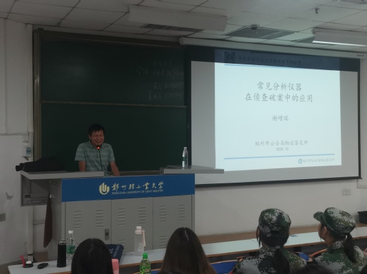 2020年10月,应材料与化学工程学院邀请郑州市公安局物证鉴定所高级工程师谢增瑞、河南省疾病预防控制中心检测检验中心副主任张榕杰、郑州海关技术中心王素方博士等多位专家来院分别作了多场专业教育报告。应用化学专业2020级学生及辅导员、全体教师参加报告会。系列报告会由孙雨安教授主持。