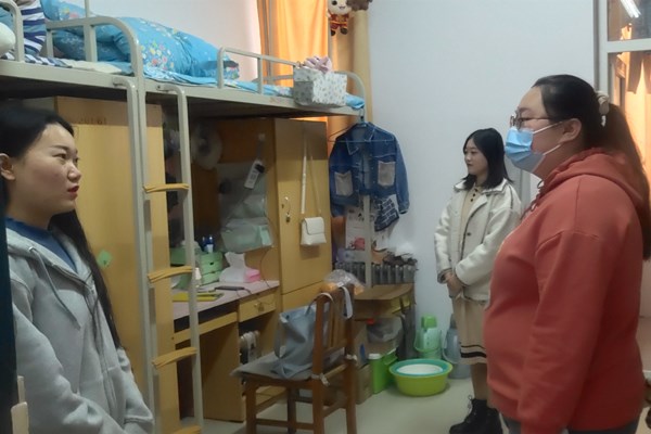 在走访过程中,辅导员逐一检查了宿舍安全卫生情况,重点查看了违章电器、易燃易爆物品、物品摆放是否整齐等情况。辅导员与同学们亲切交谈,了解同学们生活、学习、宿舍安全卫生等方面的情况,耐心细致地向同学们讲解消防安全知识、卫生保健知识,并叮嘱同学们要增强自律意识,高度重视宿舍安全问题,共同营造安全、温馨的生活环境,同时,针对存在的问题提出了整改意见。