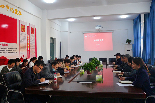 为进一步了解教学运行状况,确保教学秩序的运行良好,促进教学水平和教学质量不断提高,根据学校教学工作安排,政法学院于11月19日下午两点半在政法楼212召开教师座谈会。政法学院全体班子成员和部分教师代表出席了座谈会。