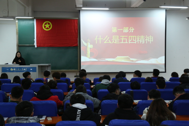 辅导员魏冉老师以“弘扬五四精神 做新时代追梦人”为主题从什么是五四精神、五四运动的历史意义、时代内涵、当代青年人的历史使命、面对新时代应该怎样做等几个方面,为大家分享在新时代,如何做追梦新青年。魏冉老师让同学们全面的认识到五四精神的内涵以及弘扬和发展五四精神的重要性,也让同学们在学习中,更加明确在新时代更要努力奋斗,用奋斗为追梦之路添彩。