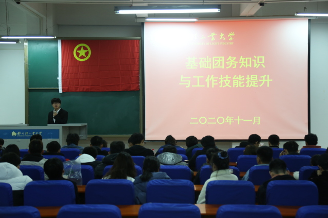 软件学院年级团总支书记陈宾做了“基础团务知识与工作技能提升”的主题讲座。陈宾同学带领大家学习了PU口袋校园、志愿汇和智慧团建的基础使用方法,同时讲解了后台管理的技巧和形式。同时在提高大家工作技能的基础上,为同学解决了现在所遇到的困难,将同学们现有的或以后可能出现的问题进行了分析处理。