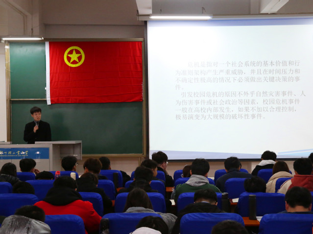 辅导员刘智文老师做了题为“高校学生干部在校园危机事件预防及处理中的角色定位”的报告,阐述了校园危机的基本含义和内容,从学生干部“过程监督”、“事件发现”、“过程参与”等方面着手,分析了学生干部校园危机事件预防及处理中的角色定位,指导学生干部较好地协助学校和老师处理好校园危机,保障校园稳定。