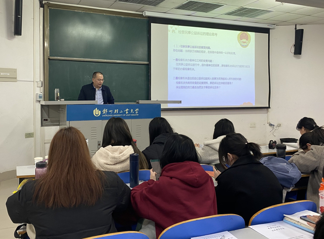12月11日下午,受政法学院邀请,河南检察官学院华德波处长在科学校区三教楼108教室为政法学院法学系师生做了题为“民事公益诉讼实践的问题和思考”的精彩讲座。政法学院部分教师、法学2017级、法学2018级、法学2019级和2020级法学专升本学生参加。讲座由法学系教师王阁主持。
