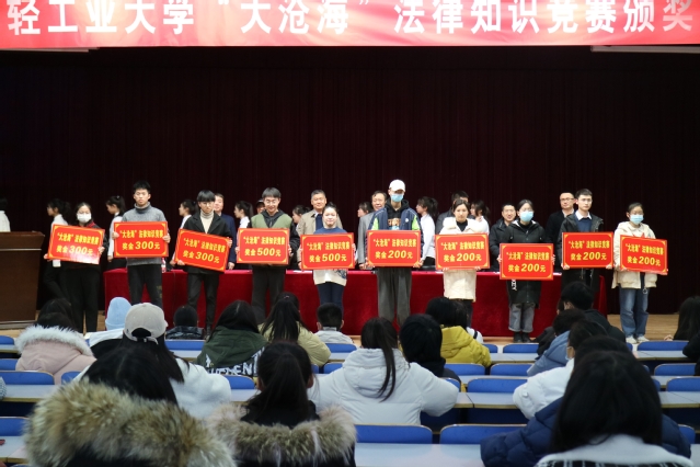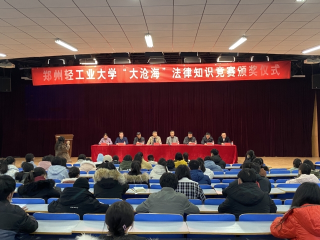 会上,校团委副书记王银峰宣读了《关于表彰2020年郑州轻工业大学“大沧海杯”法律知识竞赛获奖人员的决定》。本次活动在大沧海律师事务所的大力支持下,在校党委宣传部、学工部(处)、校团委的指导下,政法学院积极准备、广泛宣传,我校广大学生投入了高昂的热情,全校共2300余位同学参加了比赛。本次大赛首次加入民法典组,专业组分为高级组、初级组,非专业组采用线上答题的方式。经过笔试、复试两个阶段的全面考核,专业组法学专升本2002班范旭东等20名学生分别获得高级组一、二、三等奖及优秀奖,专业组法学1901班叶剑英等20名学生分别获得初级组一、二、三等奖及优秀奖,非专业组国际教育学院IEC电子商务18-04班王颜颜等229位同学分别获得特等奖、一、二、三等奖,民法典组法学1802班李晴晴等16名学生分别获得一、二、三等奖。