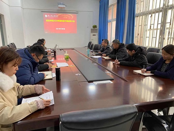 1月4日下午,政法学院在政法楼212召开了2020年度科级干部述职大会。学院领导班子成员、科级干部、教授博士代表、党外知识分子代表参加会议。会议由党委书记宋德涛主持。