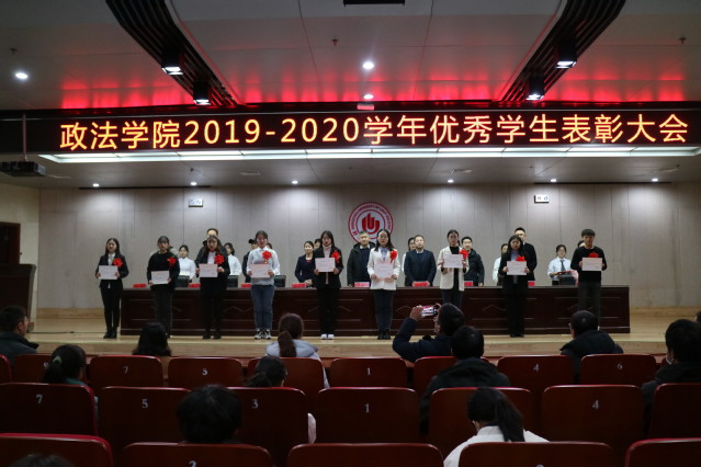 为推动学院优良学风建设,激励广大学生奋发学习、锐意进取,2021年1月7日下午,政法学院隆重举行2019-2020学年优秀学生表彰大会,对116名奖学金及荣誉称号获奖集体和学生进行表彰,学院党政领导、辅导员、班主任及全体2020级学生参加大会,仪式由学院党委副书记刘放美主持。