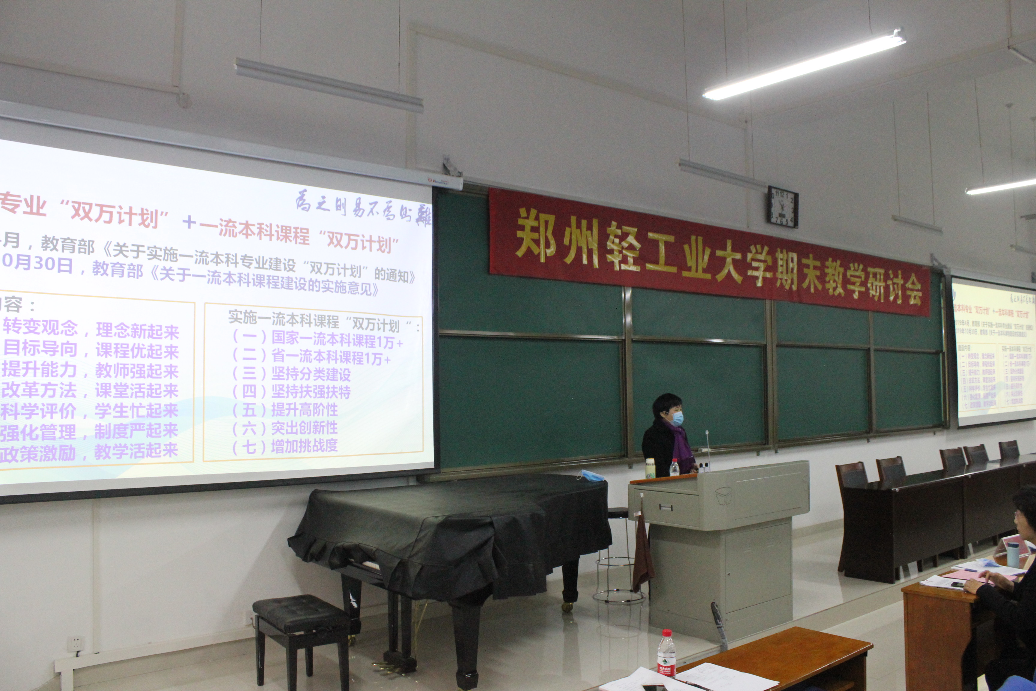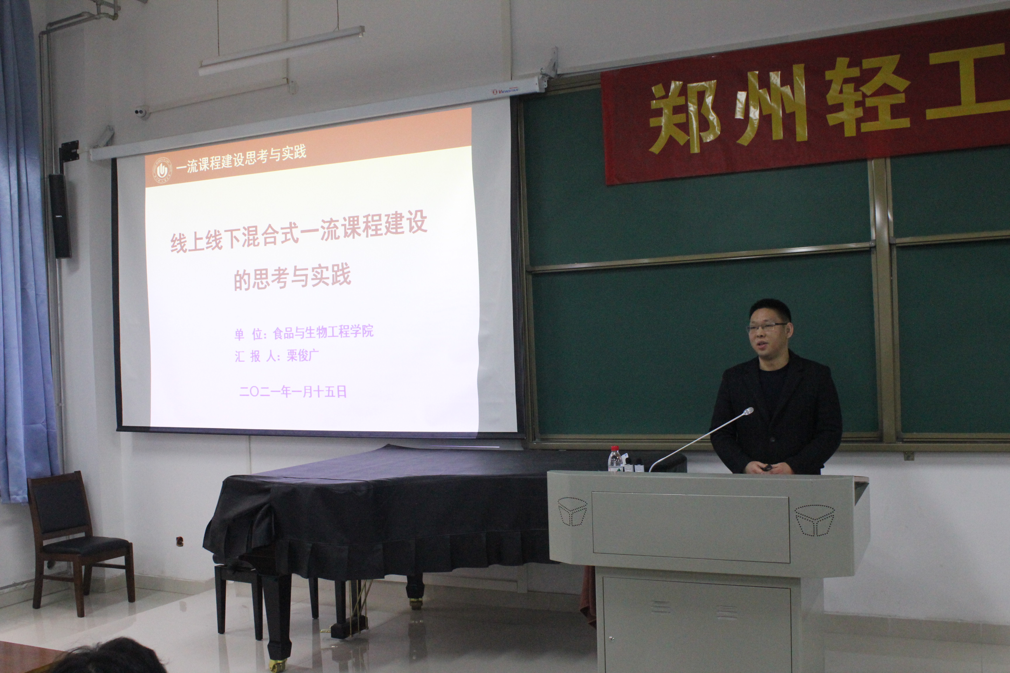 艺术设计学院曹阳院长以设计专业大类招生、多维度教学体系构建为主线,做了《面向未来的设计教学体系重构与课程再造》的主题报告。国家级一流课程《JSP程序设计技术》负责人邓璐娟老师从一流课程建设要求、线上线下混合式一流课程建设实践等方面进行了经验交流;国家级一流课程《食品加工工艺》负责人栗俊广老师从混合式一流课程核心评审指标、申报中的常见问题、课程建设感悟思考等方面进行了经验分享。