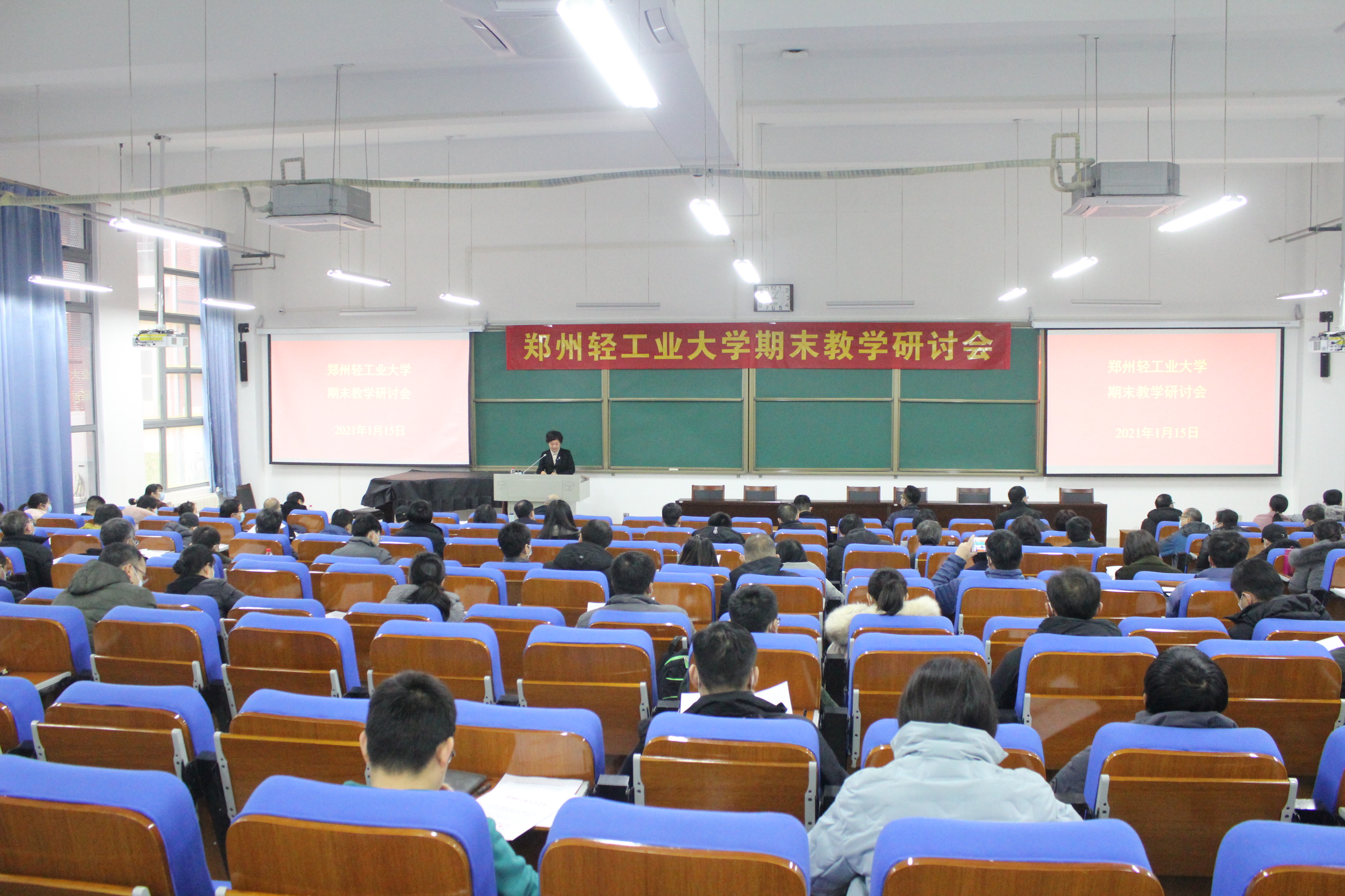 1月15日上午,学校在科学校区双创中心100室召开期末教学研讨会。各教学单位负责人、教学负责人、专业负责人、公共基础课程负责人,教学质量监控员,教务处、教学质量监控中心、校督导室负责人及相关人员参加会议。会议由王新杰副校长主持。