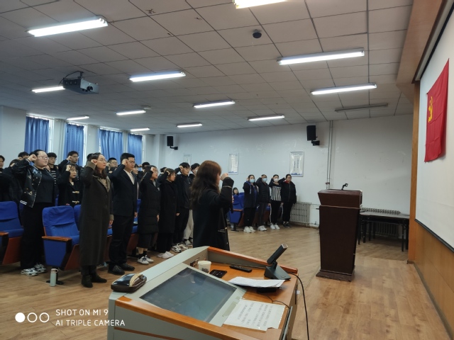 大会在庄严的《国际歌》中拉开帷幕。宣誓仪式中,79名新党员举起右手,面对党旗庄严宣誓,“我志愿加入中国共产党,拥护党的纲领,遵守党的章程……”,一句句铿锵有力的誓言,表达出了新党员为共产主义奋斗终身的决心。新发展党员代表曾昊同志表示一定以身边的优秀党员为榜样,用优秀党员的标准严格要求自己,用实际行动践行自己今天的誓言。老党员代表刘春瑜同志用“感恩-努力-务实”表达了对党组织的决心。入党积极分子代表孙广宁同志号召入党积极分子们努力学习,认真工作,以优异的工作和学习成绩来接受组织的考验,争取早日站在鲜红的党旗下宣誓。