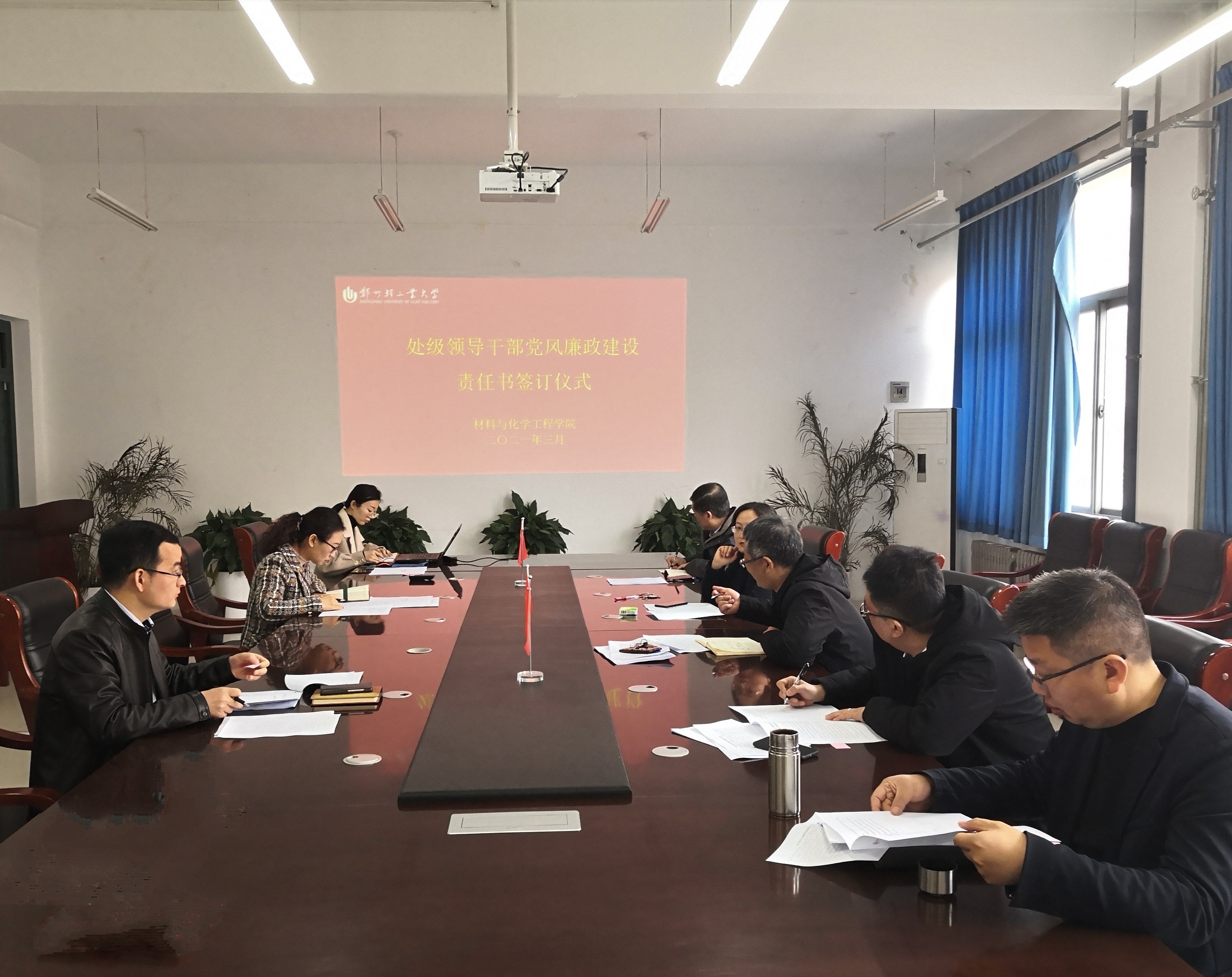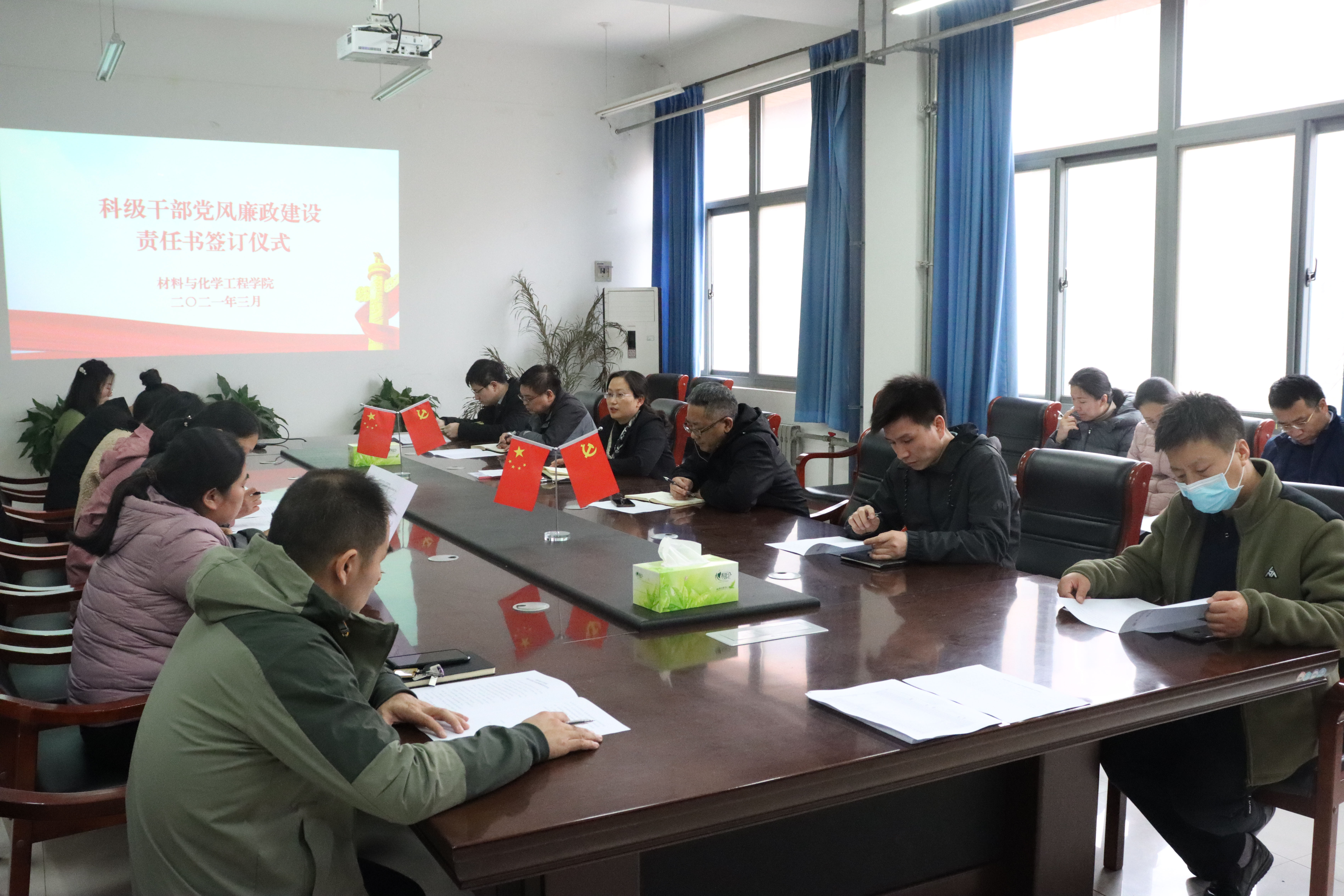 为进一步加强党风廉政建设,确保2021年度党风廉政建设各项任务落到实处,近日,材料与化学工程学院分层次召开领导干部党风廉政建设责任书签订仪式,学院领导班子、全体科级干部参加了会议。