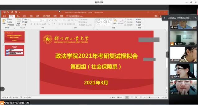 为帮助考研学子做好研究生复试准备,政法学院于3月23日至26日分专业举办了2021年考研复试模拟会,各专业系主任和骨干教师担任研究生复试评委老师,学院2021年研究生初试上线学生报名参加模拟复试,此外学院部分2020届二次考研学生也主动联系参加了考研复试模拟会。