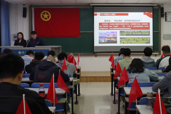 青年一代有理想、有担当,国家和民族就有希望。通过本次主题团日活动,同学们对“两会”和“两会”精神有了更深的认识和感悟。作为新时代青年大学生,不仅要了解国家时事政治,提高自身政治素养,不断掌握新知识,更要承担当代青年的社会责任,从自身做起,为建设新时代贡献力量。