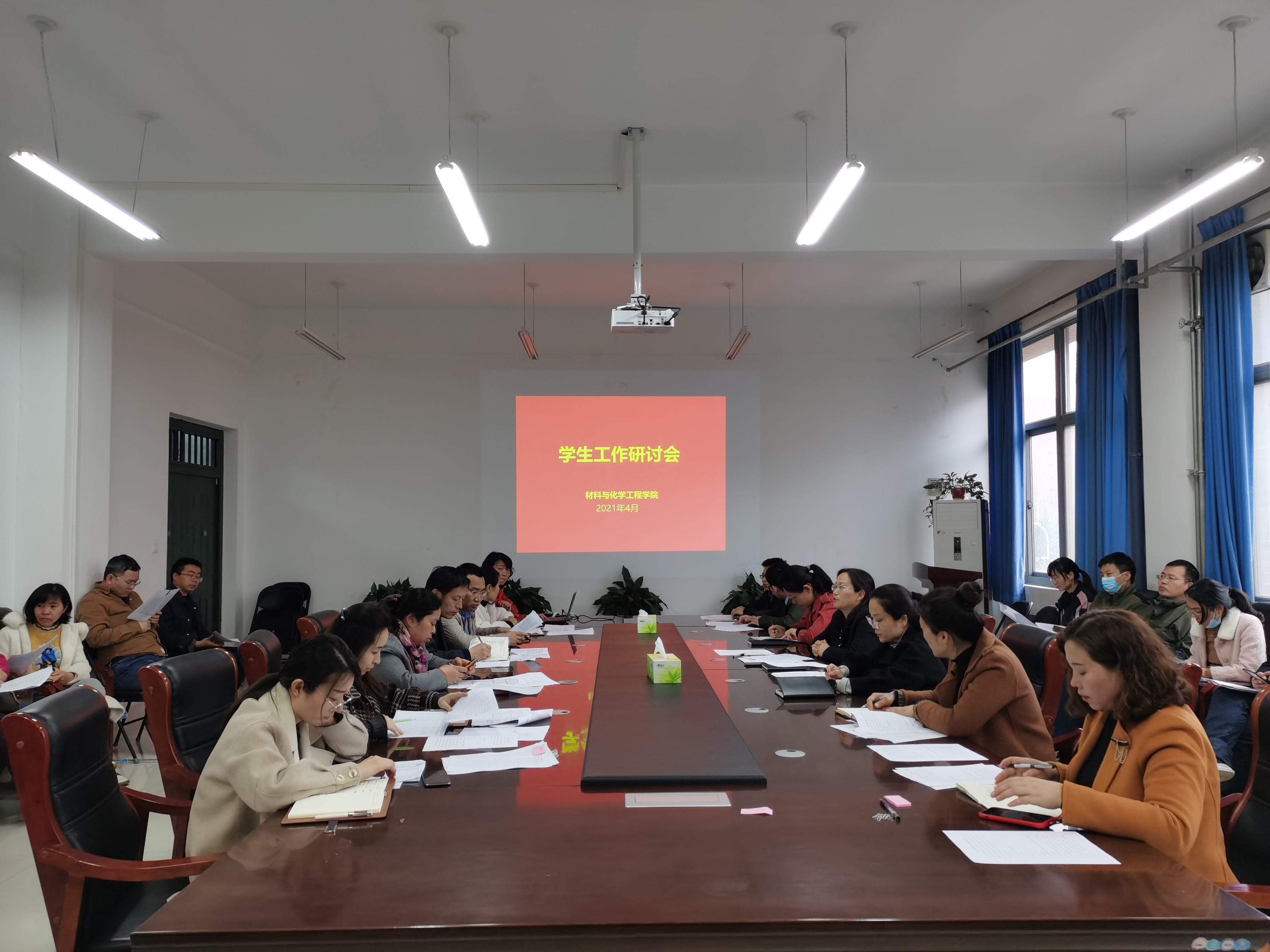 4月1日下午,材料与化学工程学院在化工楼222会议室召开学生工作研讨会。学院党委书记常亮、党委副书记司丽娜、全体班主任、辅导员参加了会议。