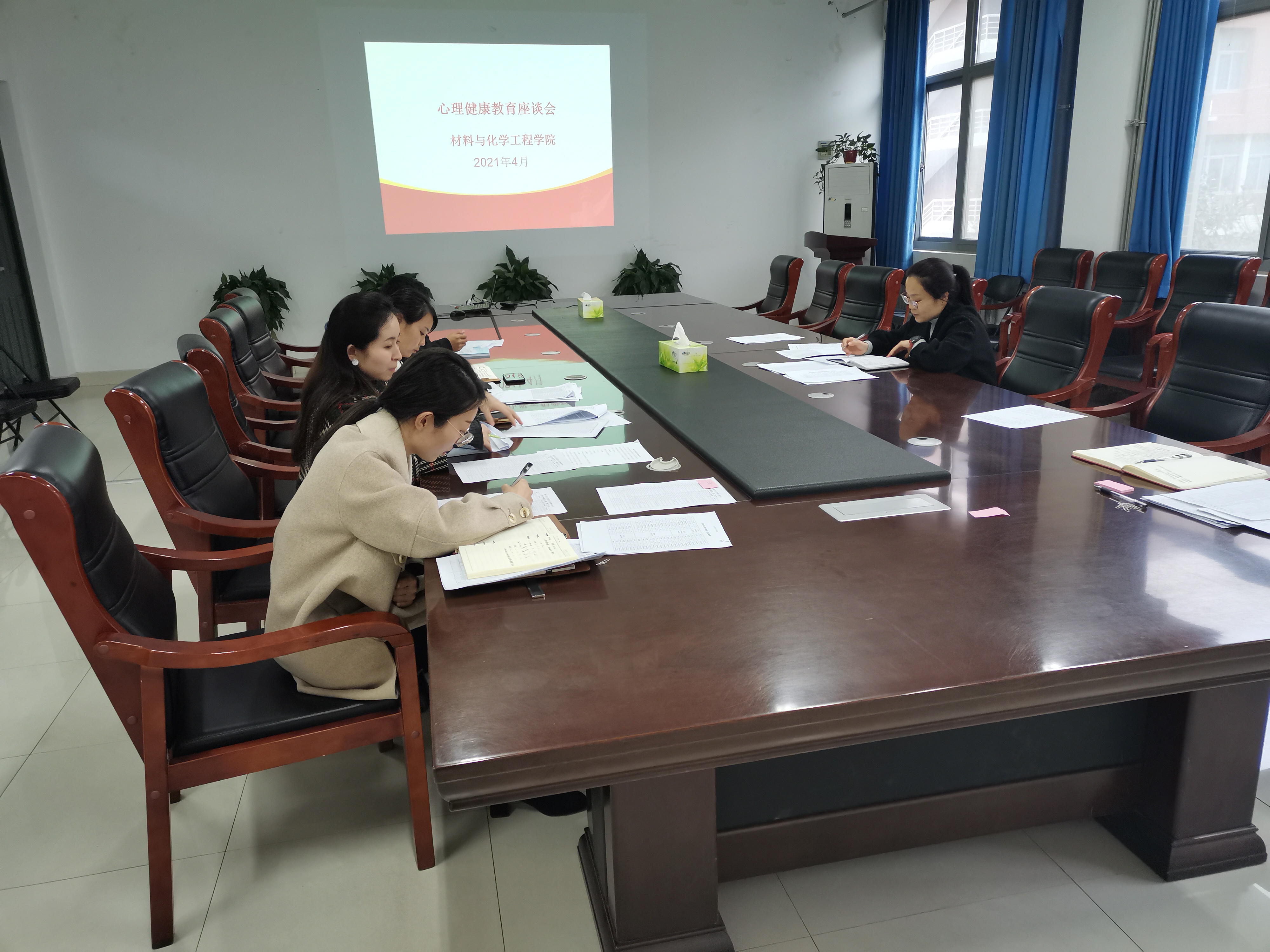 4月6日,材料与化学工程学院分批召开心理健康教育交流会。学院党委副书记司丽娜、心理健康教育专职辅导员郭智荣、各年级辅导员、班级心理委员和学生代表参会。