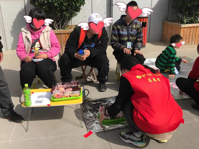 本次活动内容丰富,包含节目汇演、跳蚤市场、巧手涂鸦等环节。社区几位大龄心智障碍儿童、青少年、志愿者共同带来了节目展演,古筝、葫芦丝、豫剧、舞蹈等一个个节目精彩纷呈,将现场气氛推向高潮。跳蚤市场区域,在活动前一天志愿者组织大龄心智障碍儿童制作饼干及蛋挞用于今日活动售卖。大龄心智障碍儿童和社区青少年摊位交叉分布,分别在自己的摊位售卖手工制作点心和闲置物品。涂鸦区域,社工和志愿者引导大龄心智障碍儿童和社区青少年在画布上进行涂鸦。涂鸦的主题分为两块:一是友好型社区建设版块,以儿童人物形象、建设儿童友好型社区字样、南阳新村街道党群LOGO等为主。二是庆祝建党100周年板块,涂鸦内容以庆祝建党100周年字样、党史文字等相关红色元素为主。