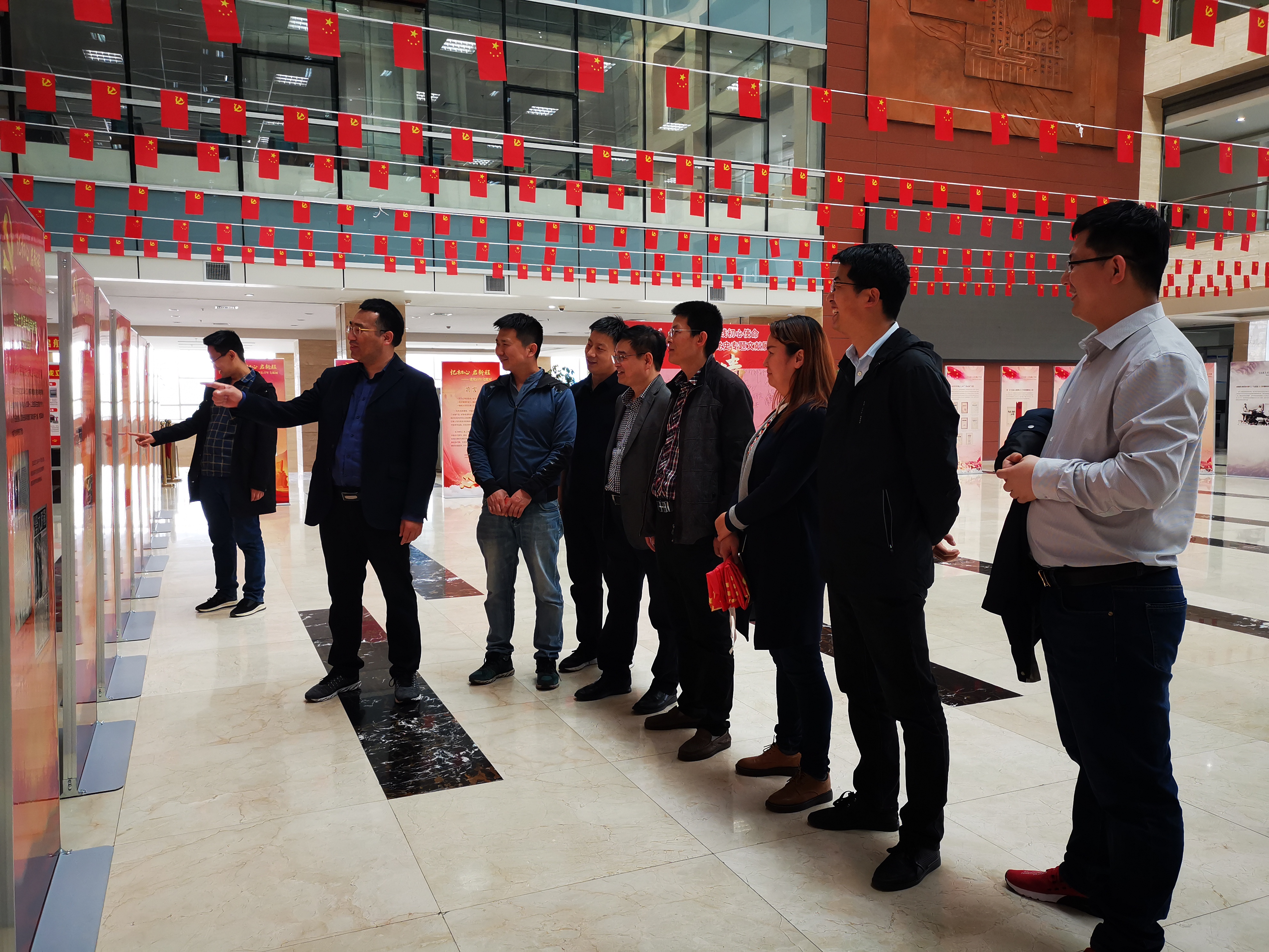此次展览的内容包含“马克思主义传播在中国”主题展、“忆初心 启新程”百年党史展两个部分,展览详细介绍了马克思主义在中国的引进和传播过程,生动再现了一代又一代共产党人进行伟大斗争、建设伟大工程、推进伟大事业、实现伟大梦想的奋斗历程,展现党在大革命时期、土地革命战争时期、全民族抗日战争时期和全国解放战争时期的壮阔图景。参观过程中,党员干部们被一张张宝贵的照片、一段段感人话语深深吸引。参观结束后,党员同志在签名墙上留言。