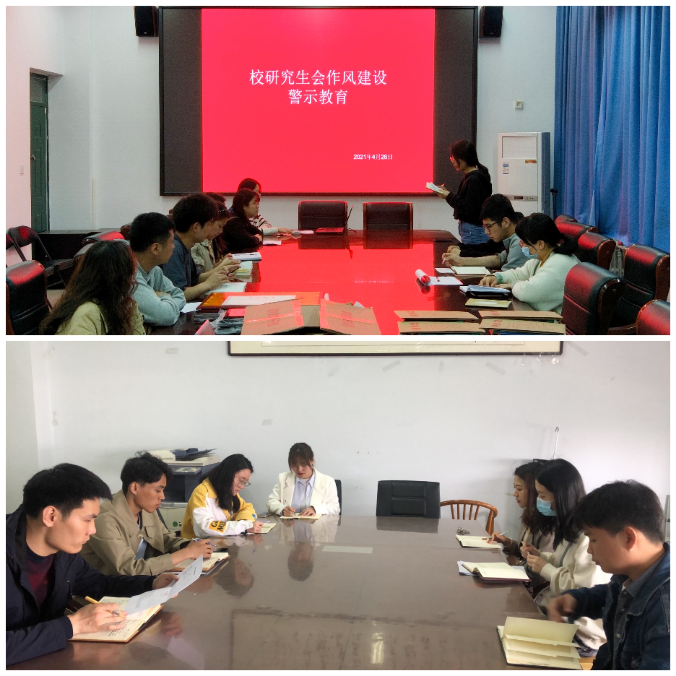为贯彻落实《关于学联学生会工作人员改进作风服务同学的若干规定》,严肃学生工作纪律,提高学生骨干素质,持续深化研究生会组织改革,全面加强对研究生会组织工作人员的管理,4月26日,我校研究生会结合相关案例,开展了工作人员作风建设警示教育座谈会。